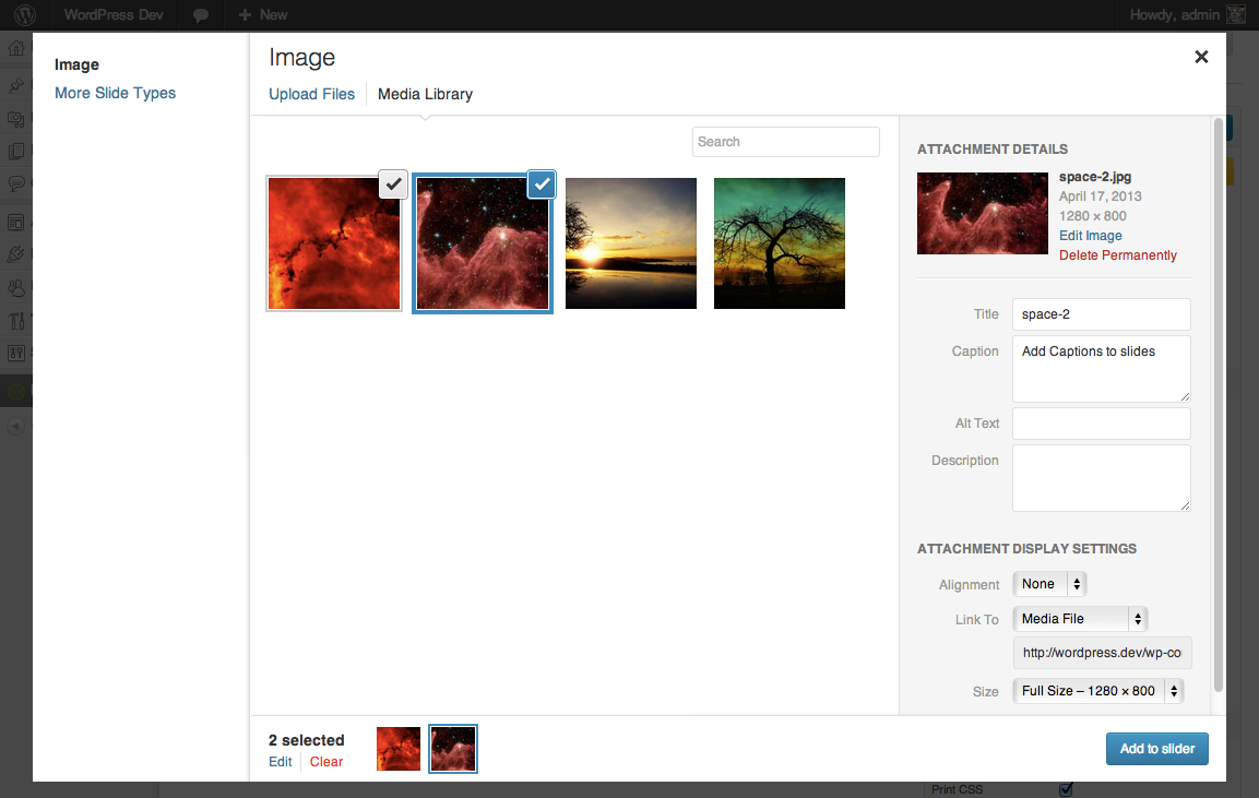Create powerful, SEO-optimized slideshows in minutes with the world’s #1 slider plugin! With WordPress’ most popular slider plugin, enhancing your blog or website couldn’t be easier: simply select images from your WordPress Media Library, drag and drop them into place, and then set the slide captions, links and SEO fields all from one page.